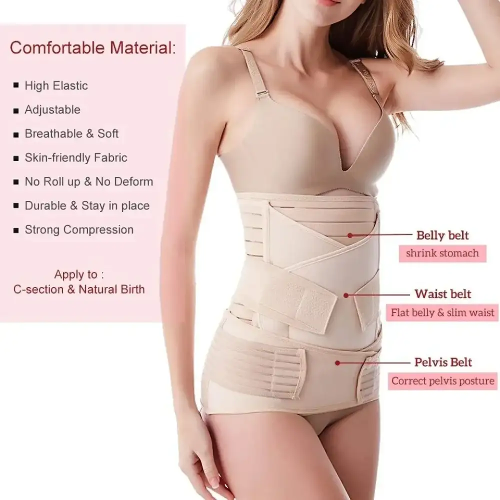 مناسب للحمل وما بعد الولادة - تدعم مجموعة أحزمة الحمل 3 في 1 البطن أثناء الاستخدام وتخفف آلام الحوض والمنطقة العجزية الحرقفية. ويمكن استخدامه كحزام بعد الولادة، والذي يمكن أن يشد البطن الكبيرة الناجمة عن الحمل ويساعدك للعودة إلى شكلك الطبيعي قبل الولادة.