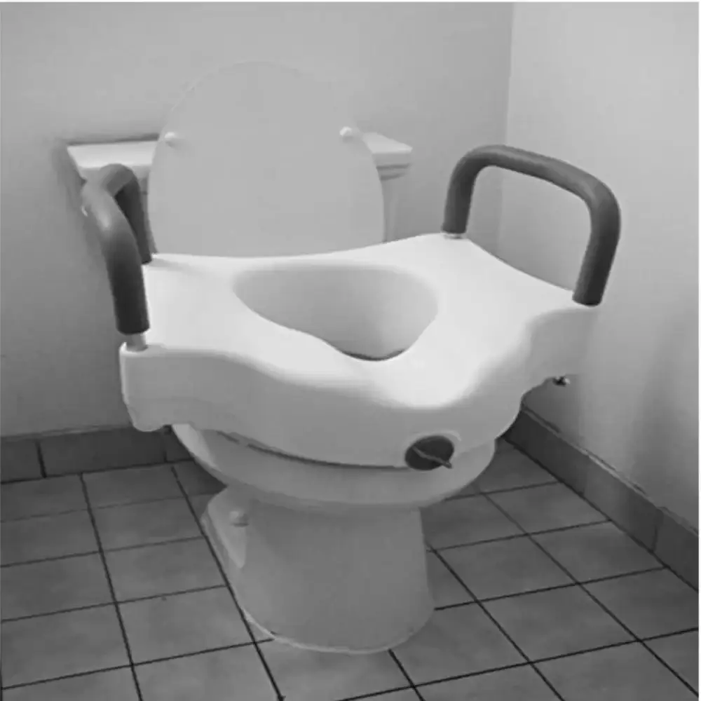 يمكن مسح مقعد المرحاض المرتفع المتين بمطهرات منزلية عادية أو مناديل مطهرة ولا يتداخل مع التنظيف المنتظم لوعاء المرحاض. سهل الحمل، حامل المقعد خفيف الوزن مع مقابض قابلة للإزالة.