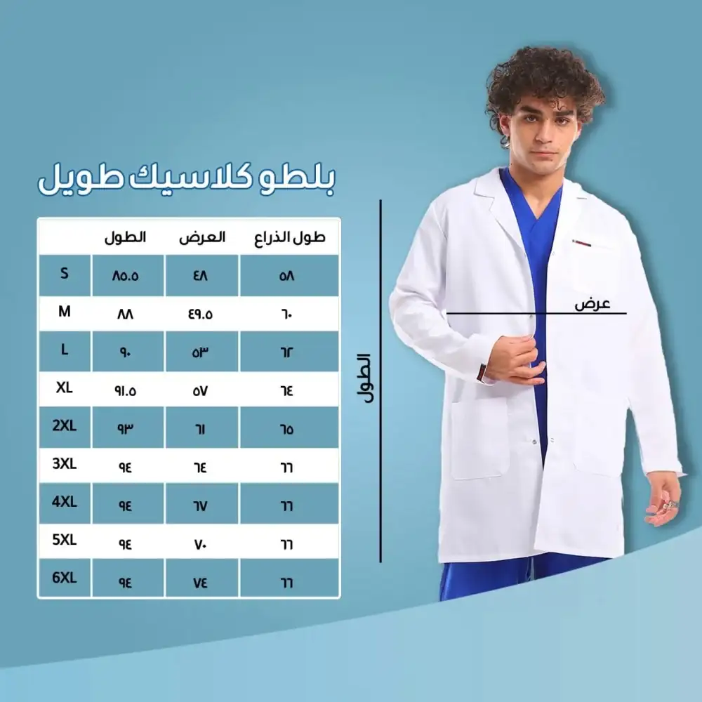 بالطو طبى كلاسيك طويل ابيض ناصع البياض خامة من القطن والبوليستر ثقيلة وقوية التحمل العلامة التجارية : ترافيرا اللون : ابيض ناصع نوع القماش : بوليستر × قطن نوع : الزي الطبي القياس : متوفر من S الى 3XL المجموعة المستهدفة : رجالى