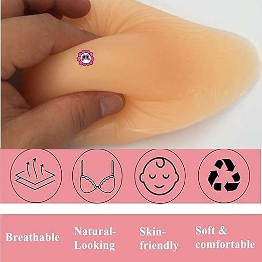 • المادة: مصنوع من السيليكون الطبي بنسبة 100%، ناعم، صديق للبشرة. إنها غير سامة وعديمة الرائحة، ولا تسبب الحساسية ولن تسبب أي ضرر على جسم الإنسان. المس والشعور وكأنها ثديين حقيقيين.