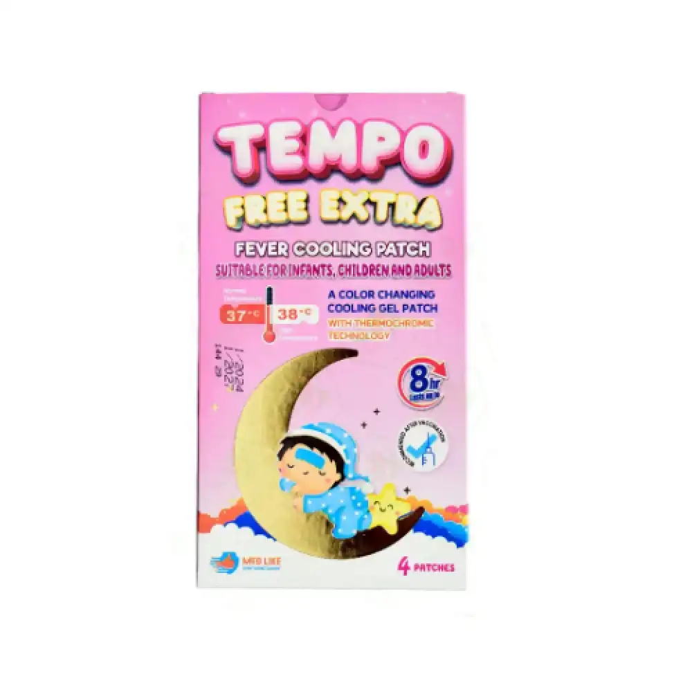 الاستخدامات: كمادات لراحة مؤقتة من الحمى للأطفال ( مناسبة للرضع ) والبالغين. التبريد أثناء الطقس الحار. المواصفات: حجم العبوة: 4 قطع لاصق لطيف لتطبيق آمن على الجلد. طريقة الاستعمال: تنظيف وتجفيف منطقة التطبيق. قم بإزالة الغشاء الواقي من الرقعة. ضعي الرقعة على المنطقة المرغوبة (الجبهة والرقبة وما إلى ذلك). لا تنطبق على الجلد المصاب أو المتهيج.