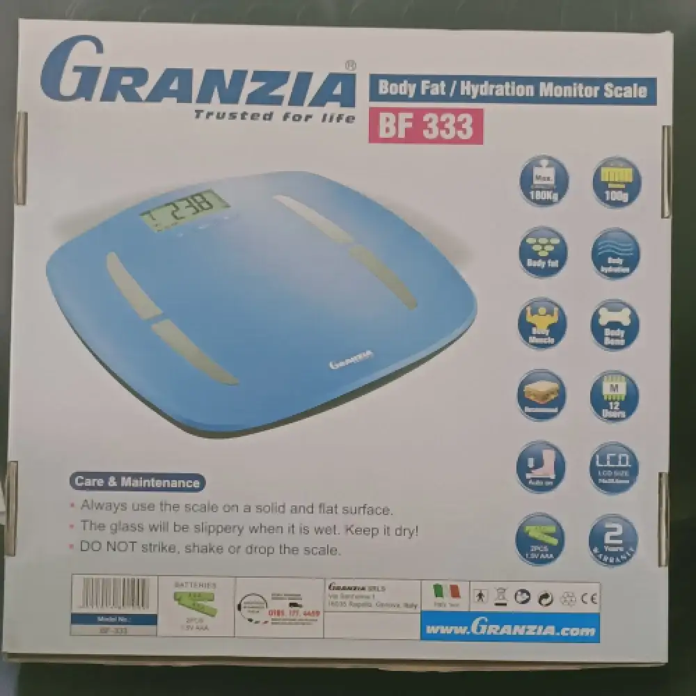 نقدم لك ميزان جرانزيا BF333 الرقمي المتطور، ليس مجرد ميزان وزن عادي، بل هو مركز متكامل لتحليل تركيبة جسمك بدقة فائقة!