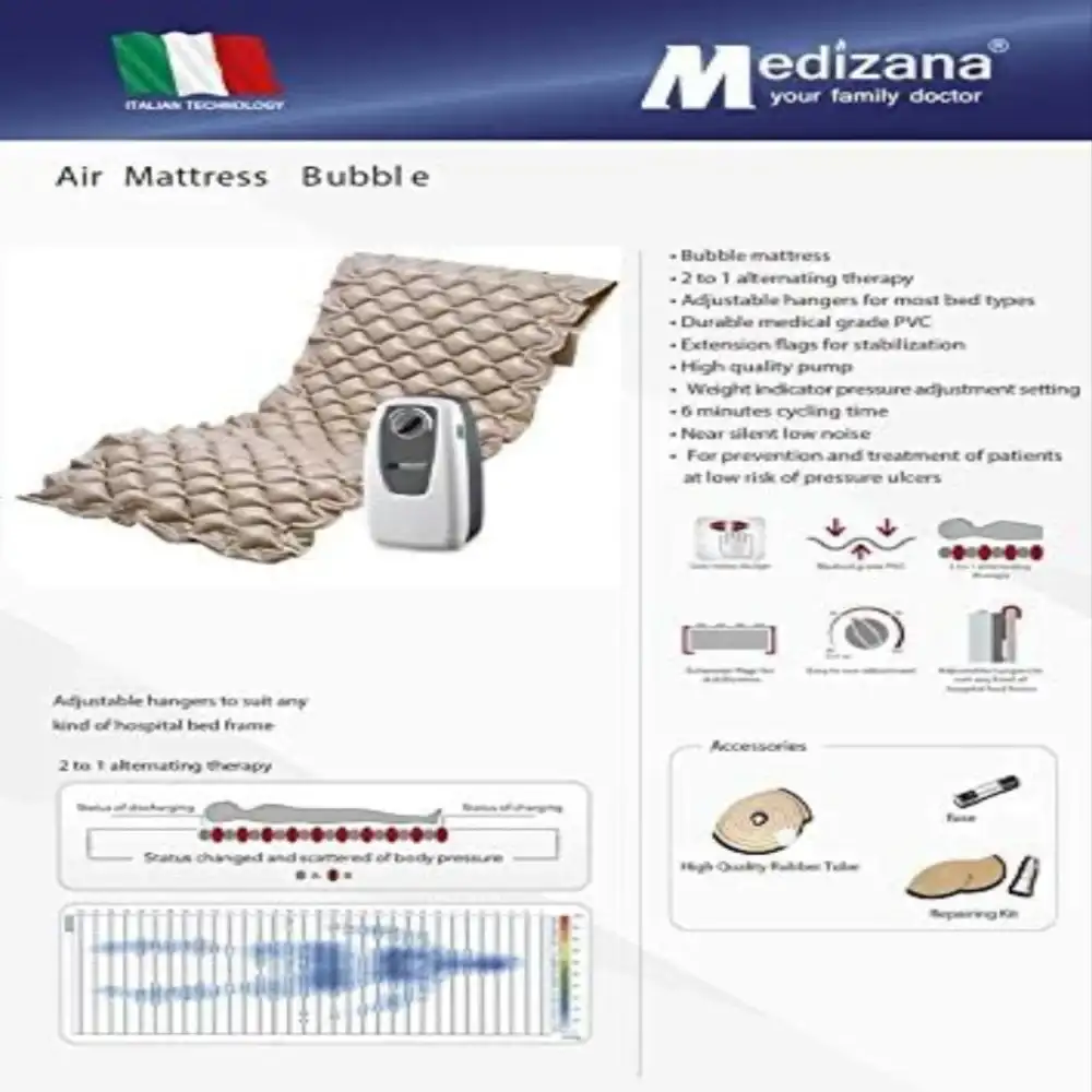 • تكنولوجيا الفقاعات المتقدمة: تعمل على توزيع وزن الجسم بالتساوي، مما يقلل الضغط على نقاط الضغط ويمنع حدوث قرح الفراش.