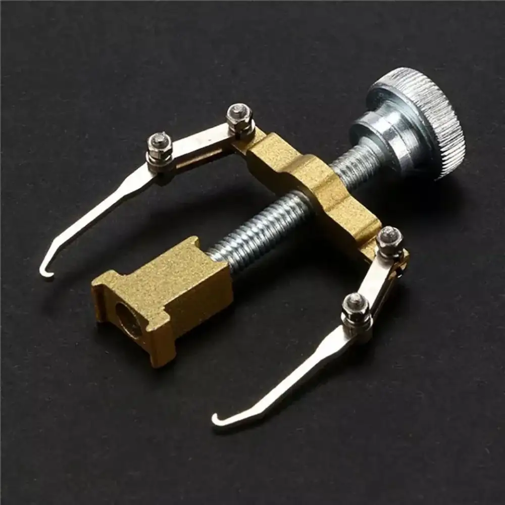 1. تثبيت الجهاز: ضع الشوكتين على أطراف الظفر، ثم ثبت البرغي العلوي وأدر العجلة العليا لإحكام إمساك الظفر.