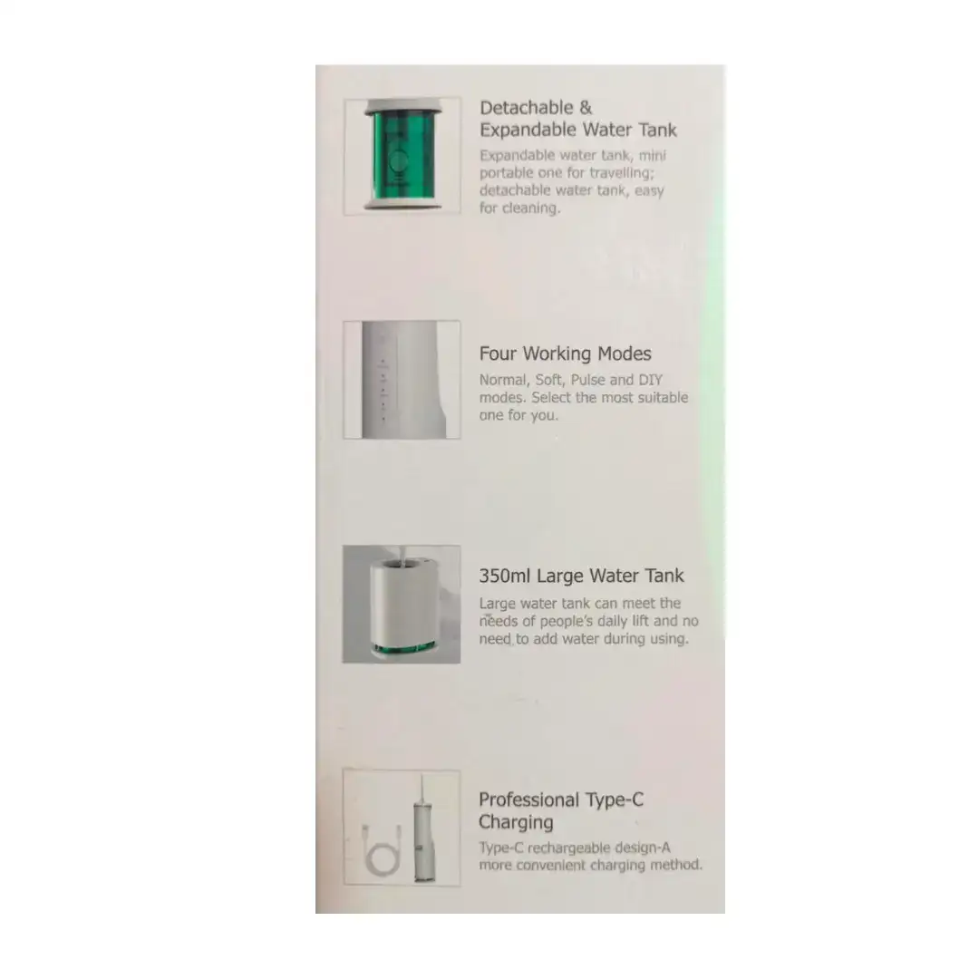 • خزان مياه كبير سعة 350 مل: يضمن هذا الخزان الكبير إمكانية إكمال جلسة التنظيف دون الحاجة إلى إعادة تعبئة الماء، مما يوفر راحة أكبر. كما أنه قابل للفصل والتوسيع، مما يجعله سهل التنظيف ومناسبًا للسفر.