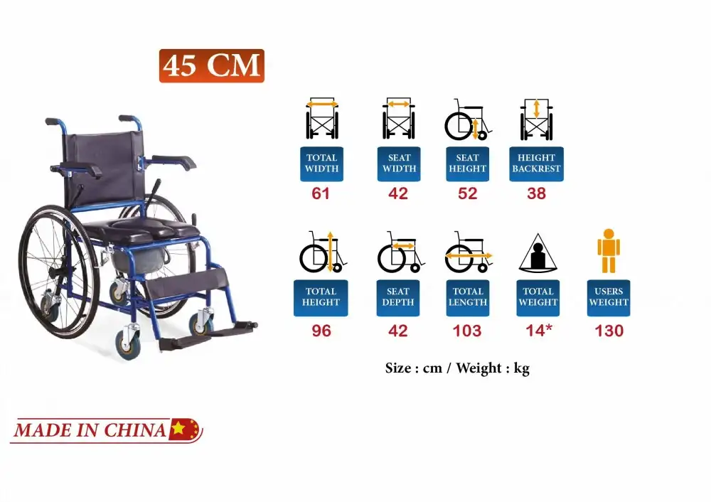عرض الكرسي المتحرك (شاملاً العجلة): 64 سم