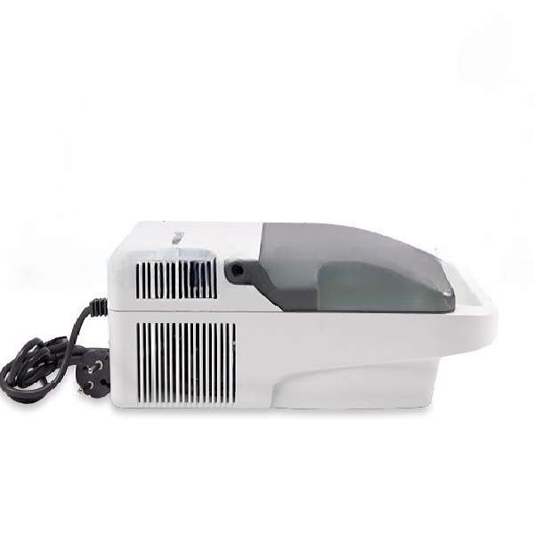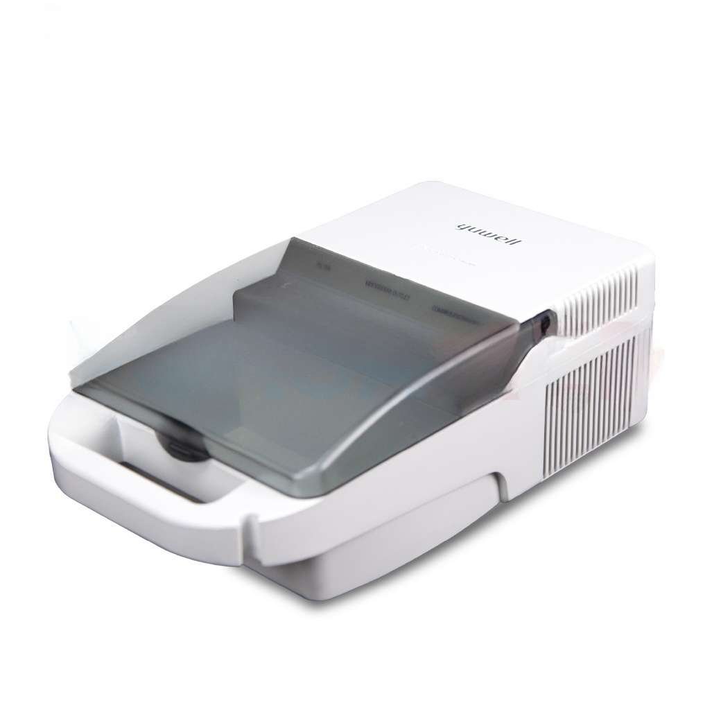 - مبدأ العمل: يقوم الجهاز بضغط الهواء عبر أنبوب إلى كوب الدواء، مما يحول الدواء السائل إلى جزيئات رذاذ دقيقة يتم استنشاقها عبر قناع الوجه أو قطعة الفم.